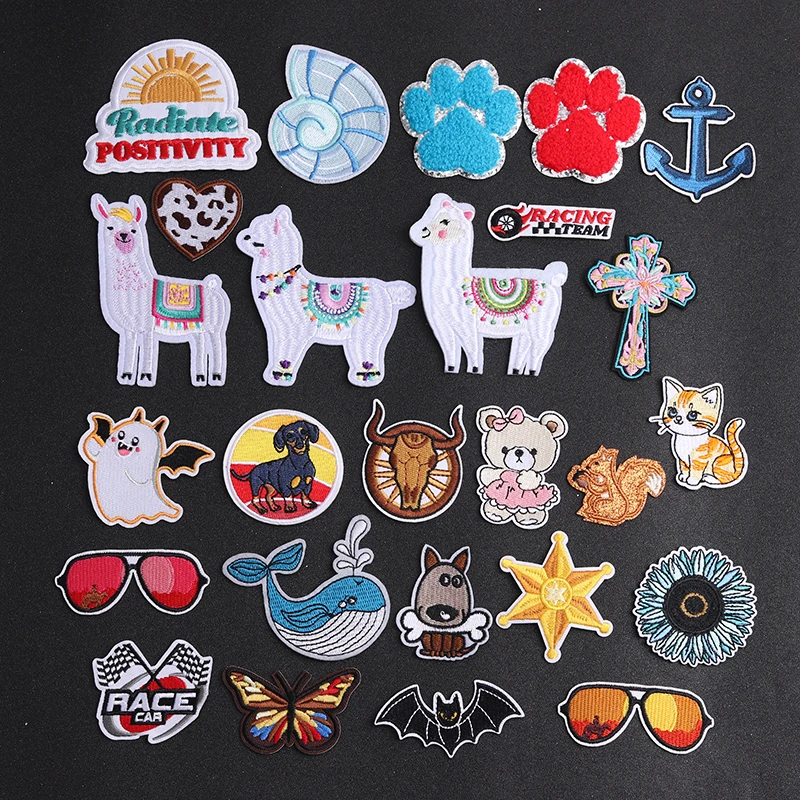 Sheep Sunflower Landscape Sunglasses Iron-On Patches Clothe Embroidery Applique Sewing Supplies Decorative Handmade Badges